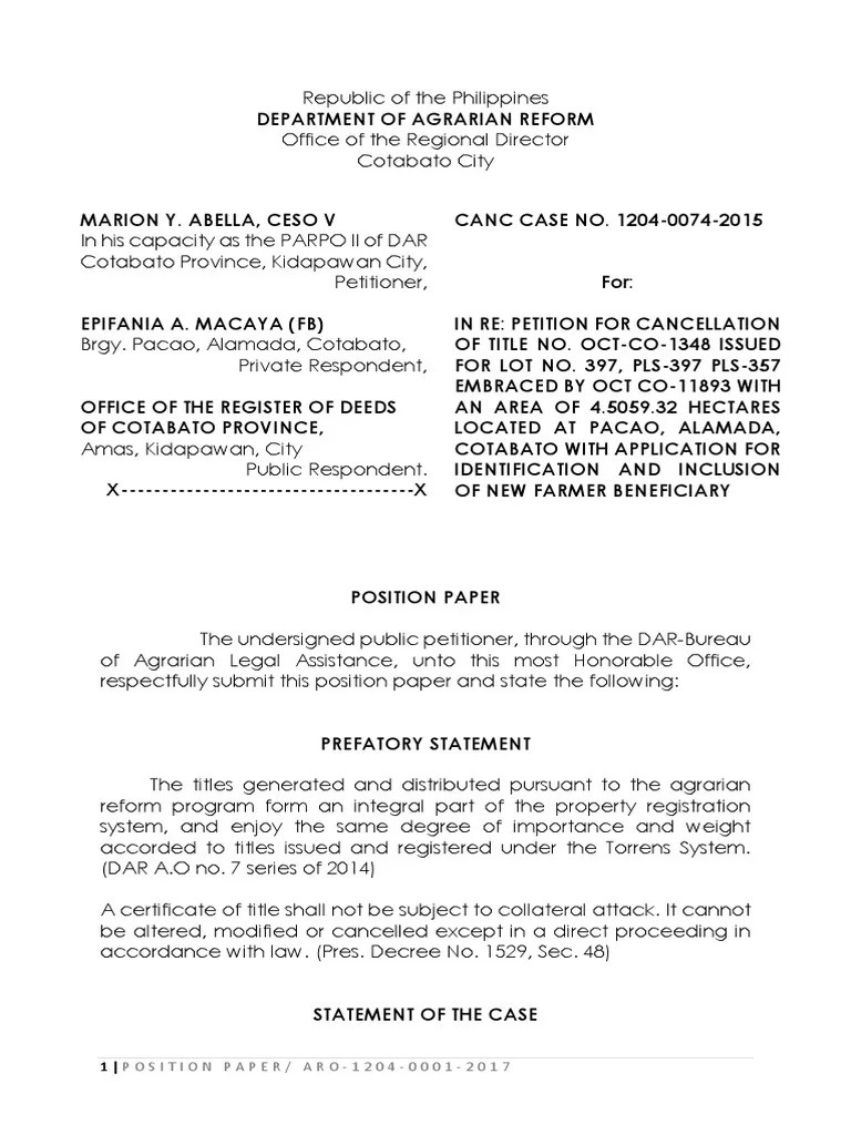 Use this template as a guide to write the outline and draft of your position paper position paper sample. A position paper can be arranged in the following format: